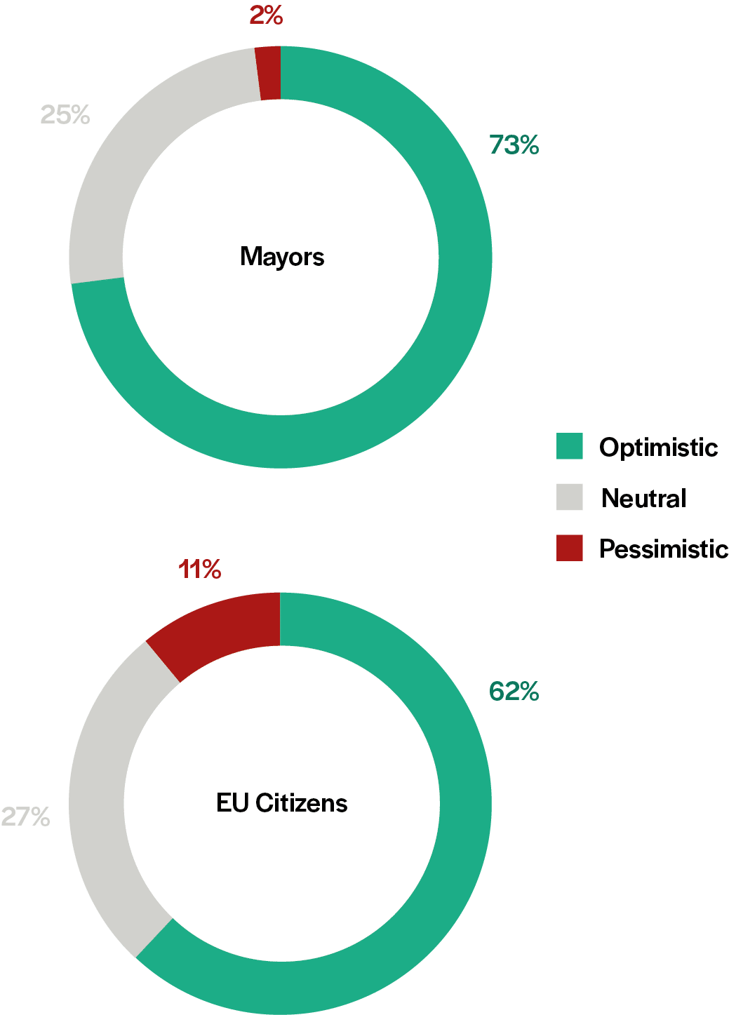 Optimism about the future of the EU: Mayors vs. EU citizens