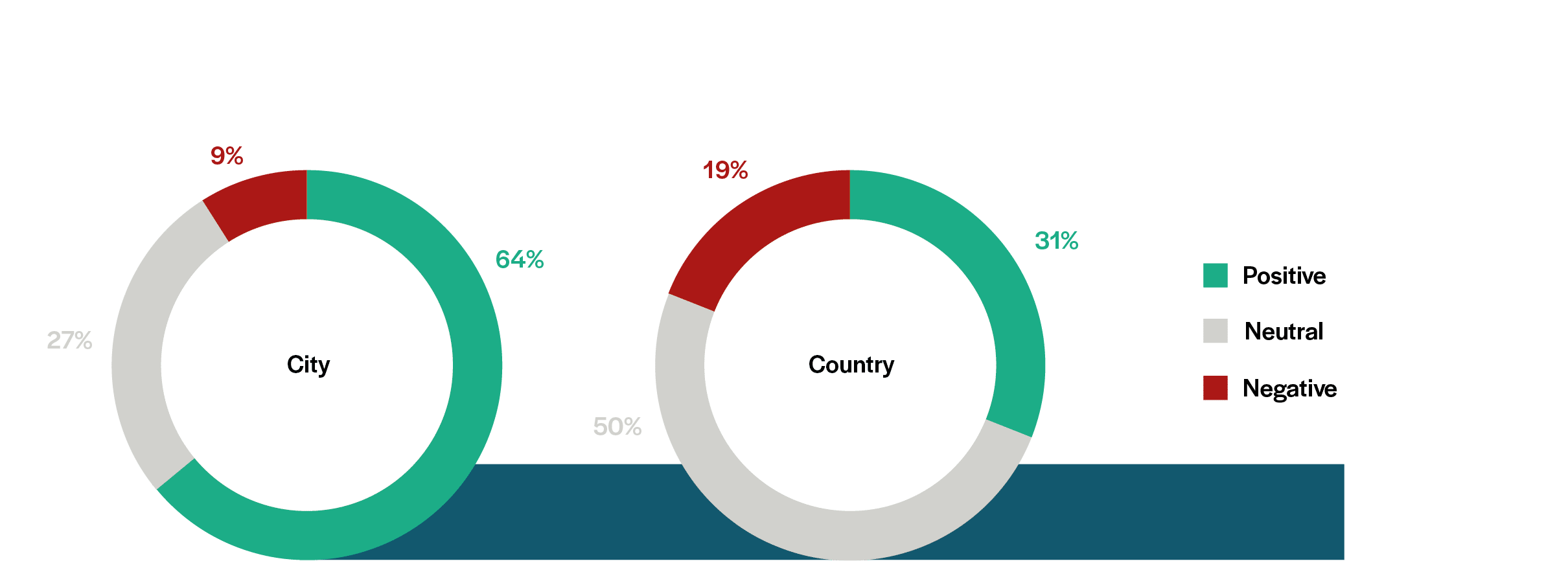 This divide is particularly evident in cities that report strong local economic confidence despite national economic pessimism. These cities are key economic engines, benefitting from strong local investment, innovation hubs, and urban-led policies that stimulate growth. However, they remain concerned about wider economic conditions, such as national-level policy stagnation, inflationary pressures, and slow fiscal reforms.