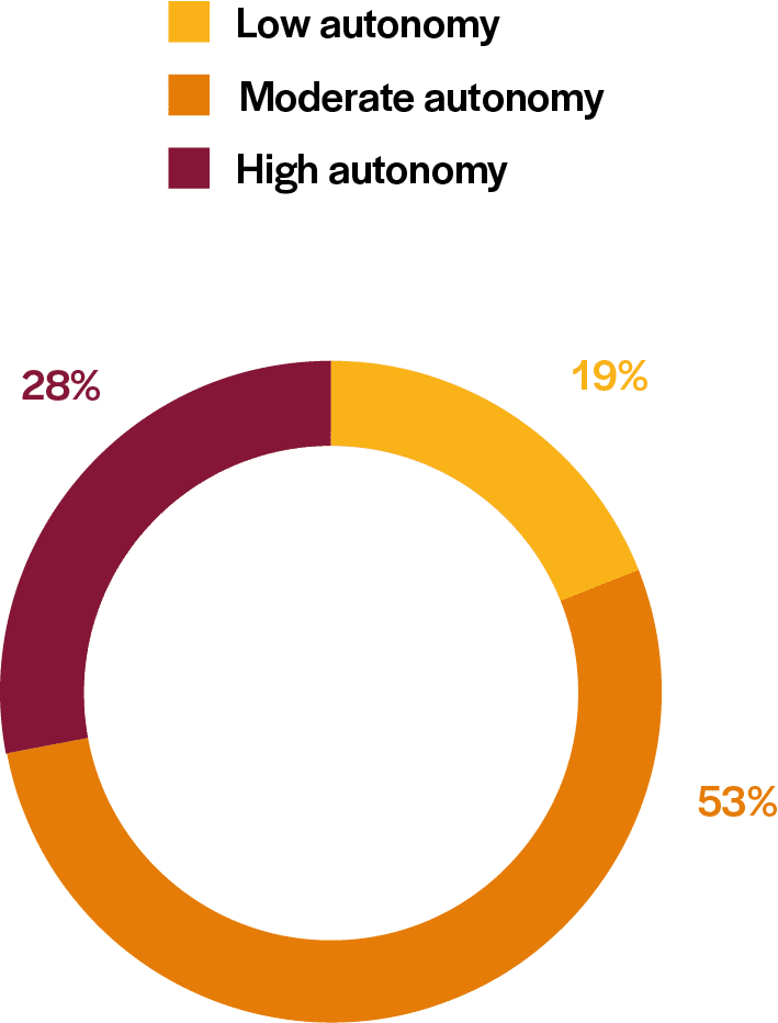 Mayors’ perspectives on fiscal autonomy highlight major disparities in the financial independence of European cities. While some cities report strong control over their budgets, taxation, and investment decisions, many remain financially constrained, relying heavily on national and regional governments for funding. These limitations affect cities’ ability to implement long-term strategies and respond effectively to local challenges. Only 28% of mayors feel their city has high fiscal autonomy (scores 7–10), demonstrating that most local governments remain financially constrained in delivering strategic priorities.